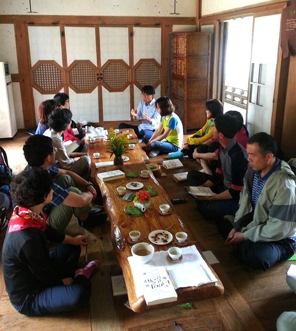 편백나무 숲에서 점심을 먹고 간단한 게임을 한 다음 박태수 문화해설사의 안내로 선암사 경내를 순례를 하며 도반들과 한층 가까워지는 즐거운 시간을 가졌습니다. 그리고 절 초입에 있는 차체험관에서 나눈 ‘새로운 100년 통일 이야기’는 무수한 강물이 드넓은 바다에서 하나로 모이는 것처럼 도반들의 통일에 대한 염원이 한데 모여 큰 물줄기를 이루는 듯 해 가슴이 뛰었습니다. 그때 나눈 이야기를 소개하겠습니다.