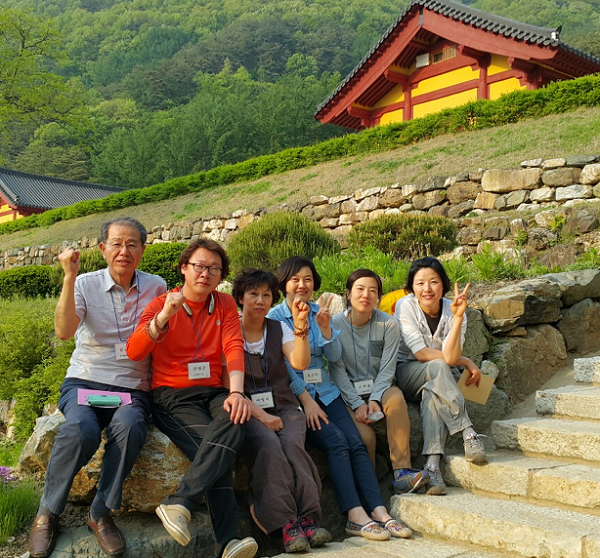 ▲ 봄불교대 특강수련, 푸근했던 문경수련원(맨 오른쪽이 박종은 총무)