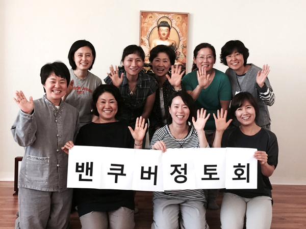 법당은 공양간과 회의실을 갖춘 너무 크지도 작지도 않은 적당한 크기의 법당이었습니다. 멀리 한국에서 배 타고 왔을 불단, 제기, 방석 등 불교용품들에 더하여 밴쿠버 도반들이 정성으로 십시일반 보시했을 살림도구들이 어우러져 편안하고 쾌적한 분위기를 만들고 있었습니다. 밴쿠버법당에는 현재 봄불대 12명, 가을불대 5명, 경전반 4명이 정진하고 있으며 정기적으로 수행법회가 열리고 있습니다. 법당 구석구석 서로 힘을 모아 법당을 꾸려가고 있는 도반들의 따뜻한 마음과 두터운 신심이 제 마음까지 전해졌습니다.