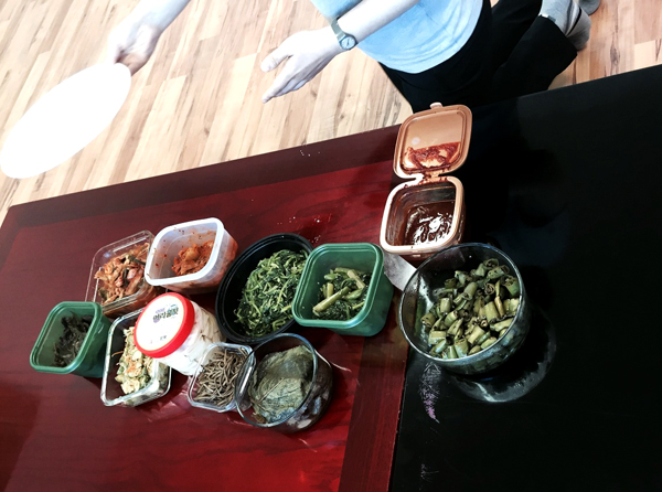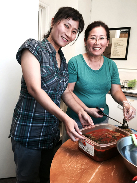 기다리고 기다리던 점심공양 시간에는 보살님들이 각자 한 두 가지씩 준비해온 반찬을 갖고 법당에서 전기밥솥으로 한 밥을 함께 나눠먹었습니다. 캘거리에서는 비싸게 사먹어야 하는 한국야채들, 보살님들의 화려한 솜씨를 뽐낸 각종 김치와 밑반찬에 정신이 황홀해져, 먹으면 없어지는 흰밥이 마냥 아쉬웠습니다. 납작하고 깨지지 않는 민무늬 코렐 접시와, 세제를 사용하지 않는 3단계 설거지통, 손으로 뜬 수세미를 보니 사소한 것도 대충 넘어가는 법이 없는 글로벌 정토회라는 자부심이 솟구쳤습니다. 캘거리로 돌아가기 전에 밑반찬을 더 만들어 싸주시겠다는 보살님들 말씀에 불량주부인 저는 감격해서 눈물이 날 지경이었습니다.