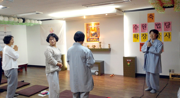 한참을 구하러 다니다가 어느 소나기 오는 날, 비 피하려고 들어갔던 부동산에서 계약을 하게 된 게 8월 여름이었고 지금의 수원법당으로 자리를 잡게 되었습니다.”