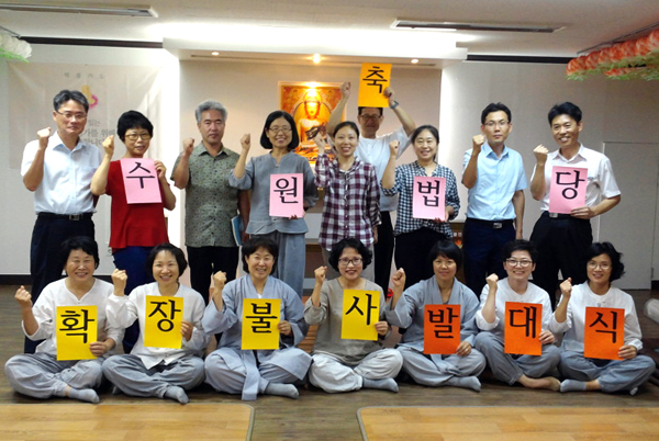 2015년 8월 26일, 수원법당은 그동안 정들었던 보금자리를 떠나 새로운 터전으로 옮기기 위한 발대식을 했습니다. 수원정토회 대표인 권류경 대표, 총무소임을 맡고 있는 조영미 총무, 저녁팀장인 목순수 보살과 저녁팀담당인 이명선 보살 이하 수원법당의 많은 도반이 발대식에 참여하여 새로운 보금자리를 위한 마음을 다졌습니다.