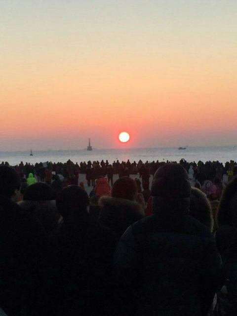 해운대 백사장 앞 거리에는 많은 차량과 사람들이 뒤섞여 있었고 한결 같이 바닷가 백사장을 향해 걸어가는 사람들을 보니, 그들은 무엇을 위해 해맞이를 하는 걸까, 라는 생각이 스칩니다. 아마도 1월1일 새해 첫날 새 다짐 새 희망을 품으려는 마음으로 여기로 왔을 것입니다. 저 속에는 연인과 헤어진 상처받은 이도 있고 이력서를 수없이 쓰고 있는 직장을 구하는 청년도 있고 생활에 지친 가장도 있고 연인과 가족과 함께 추억을 만드는 이들도 있겠지요. 그 모든 수많은 사연을 가지고 사람들이 가슴 가득 해를 품고픈 마음에 발걸음을 여기로 재촉했을 것입니다.