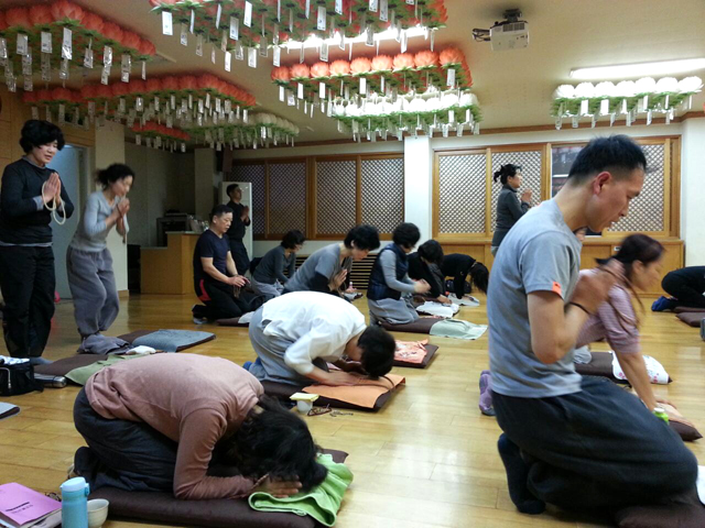 경전반 김혜진 님은 나보다 연배가 많음에도 그 짧은 시간에 천 배를 다하고 땀으로 흠뻑 젖은 환한 얼굴로 다가와 인사를 하며 기쁜 마음을 표하는데 진심으로 축하해 주었습니다. 가슴 가득 벅차오르는 그 기쁨은 오직 경험해 본 사람만이 알겠지요. 노귀선 님도 천배를 다하셨습니다. 오메, 부러버~~^^