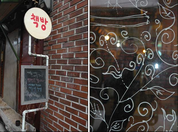 책방을 알리는 간판도 재활용 된 듯한 인상을 줍니다. 그리고 책방이라는 소박한 글씨가 눈에 들어옵니다.