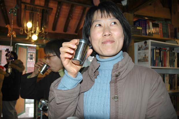 △ 짜이를 마시고 있는 임혜진, 정다연 간사