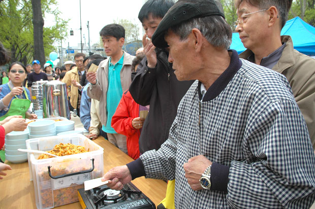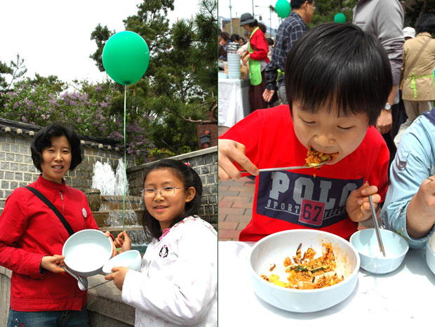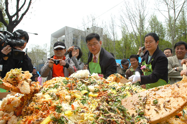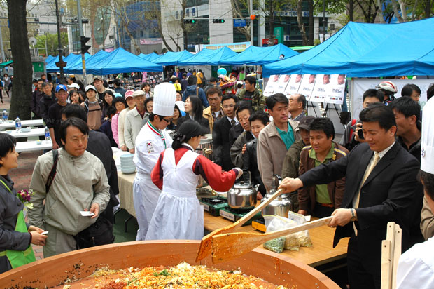 이날 비빔밥은 고궁(주)에서 전주비빔밥 협찬으로 이루어졌으며 시민들은 전주비빔밥을 2천원에 사고 음식을 남김없이 먹고 그릇을 물로 깨끗히 닦아 먹으면 1천원을 다시 돌려받는 형식으로 진행되었습다.