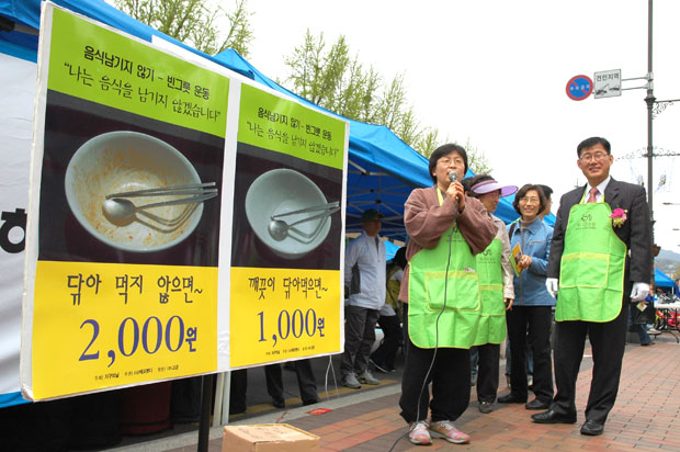 빈그릇운동에 참여한 시민들은 "음식을 남기지 않고 깨끗히 닦아 먹으면 천원을 다시 환불 받으니 기분이 좋다"고 하며 단무지를 이용해 깨끗히 닦아 음식물쓰레기 제로에 도전하였습니다.