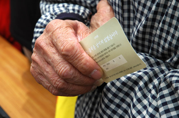 모녀가 참여한 시민은 단무지로 닦아 먹는지 몰라서 여러번 물을 마셔 엄마 한번, 딸 한번 물 배를 많이 채웠답니다.