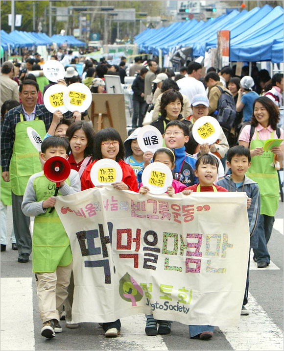 올해로 37번째를 맞은 지구의 날을 기념해 서울 대학로에서 환경단체들이 모여 다채로운 행사를 했습니다.
