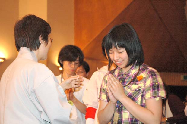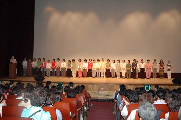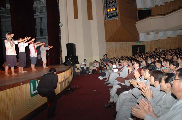 대학생 정토회가 노래를 선보이며