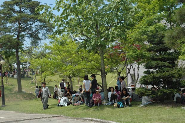 점심시간 나무 밑이며 건물 뒤며