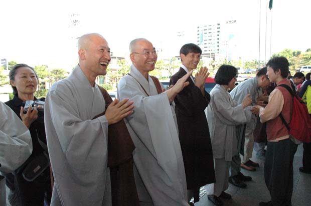 스님과 법사님들이 입구에서