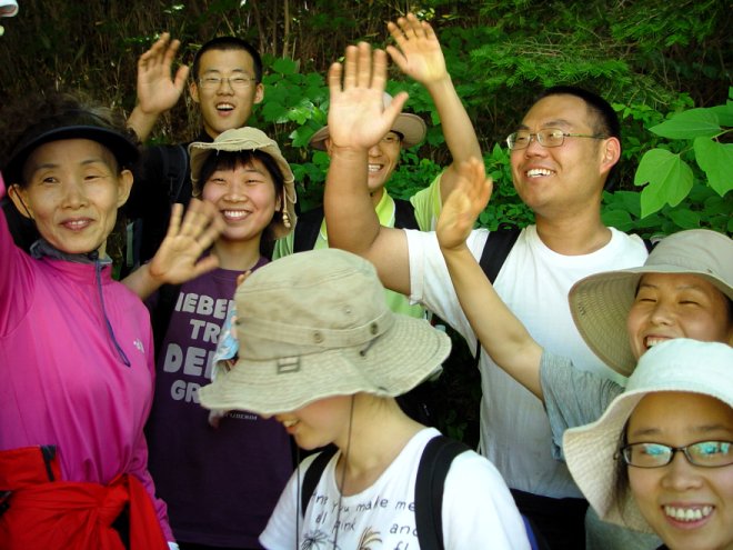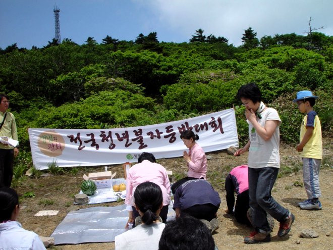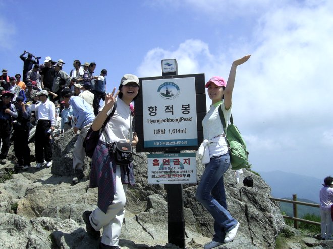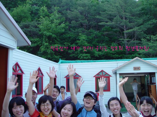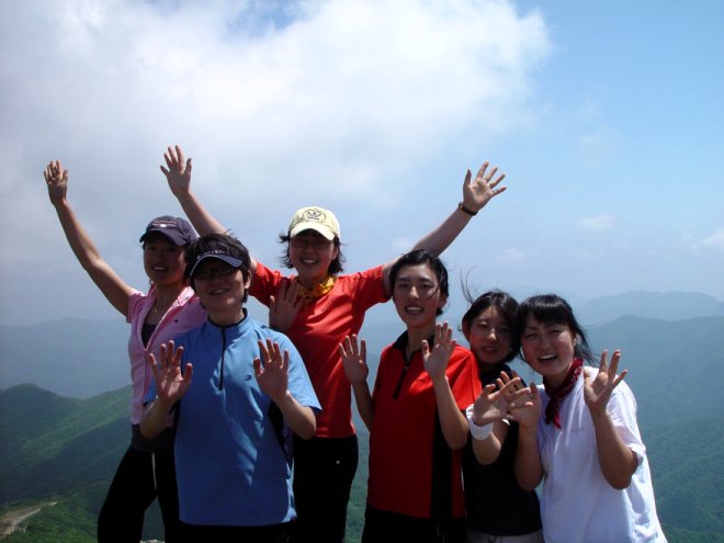 이미 정상에서 사진찍기 놀이 중이던 청년정토회 젊은이들의 모습이 눈에 들어왔습니다.
