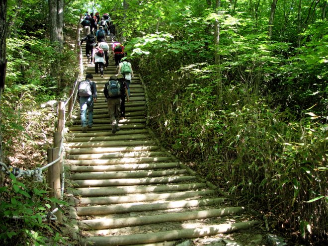 꽤 완만한 능선, 계단이 좀 많다 싶어지기 시작하더니만...