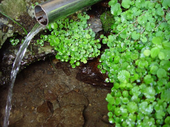 정상에서 샛길로 100M 가량 내려가서 만날 수 있는 약수터입니다.