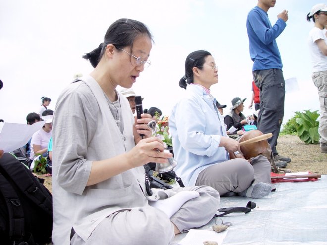 선두에 도착했으나 이런 저런 여유를 부리고 올라가니 천도재가 진행되고 있었습니다.