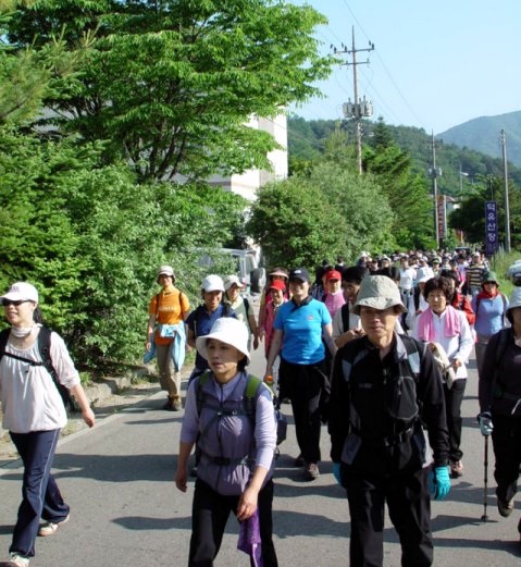 씩씩하게 덕유산을 향하는 정토행자님들~ 마치 마라톤을 시작하는 듯합니다.