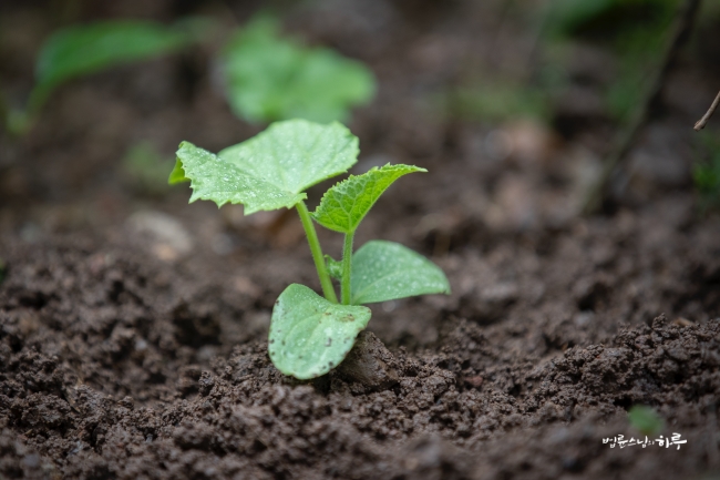 텃밭 빈 땅에 오이 모종을 옮겨 심고 상추를 정리했습니다.
